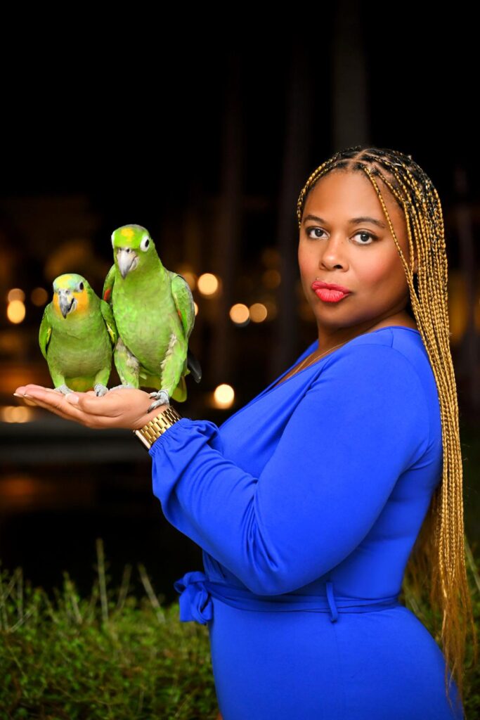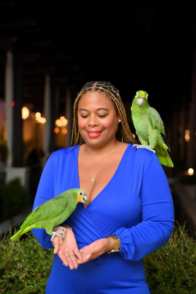 At our resort, there were these beautifully colored tropical birds you could interact with, and I couldn’t resist the chance. I was feeling myself in my dress, the Caribbean sun was golden and glowing, and next thing I know—this bright, bold parrot is perched next to me like we’d planned the whole thing.